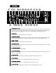Face Avant 7 6 9 8 18 10 17 19 11 12 20 13 23 14 21 15 16 5 22 25 26 24 5. LED DE STATUT ET D’ALIMENTATION Lorsque le commutateur d’alimentation est sur la position “on”, la LED s’illumine en vert. Cette LED joue aussi le rôle d’indicateur DDT. Elle deviendra rouge si la compression DDT se met en action. Si la DDT n’est pas utlisée, la LED s’illuminera en rouge en cas d’écrêtage. 6. ENTREE Cette entrée fonctionne pour tous les types de basses. 7.