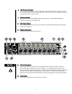 21. Entrada del Amplificador de Poder Provee una entrada directa al amplificador con una sensibilidad de entrada de 1 Voltio. Cuando se inserta un conectador RCA phono en esta entrada, la conexión entre la salida del preamp y el amplificador de poder es desconectada internamente permitiendo acceso directo al amplificador. Usar esta entrada a la vez que la salida del preamplificador (#9), un procesador de señal puede ser insertado entre la mezcladora y el amplificador. 22.