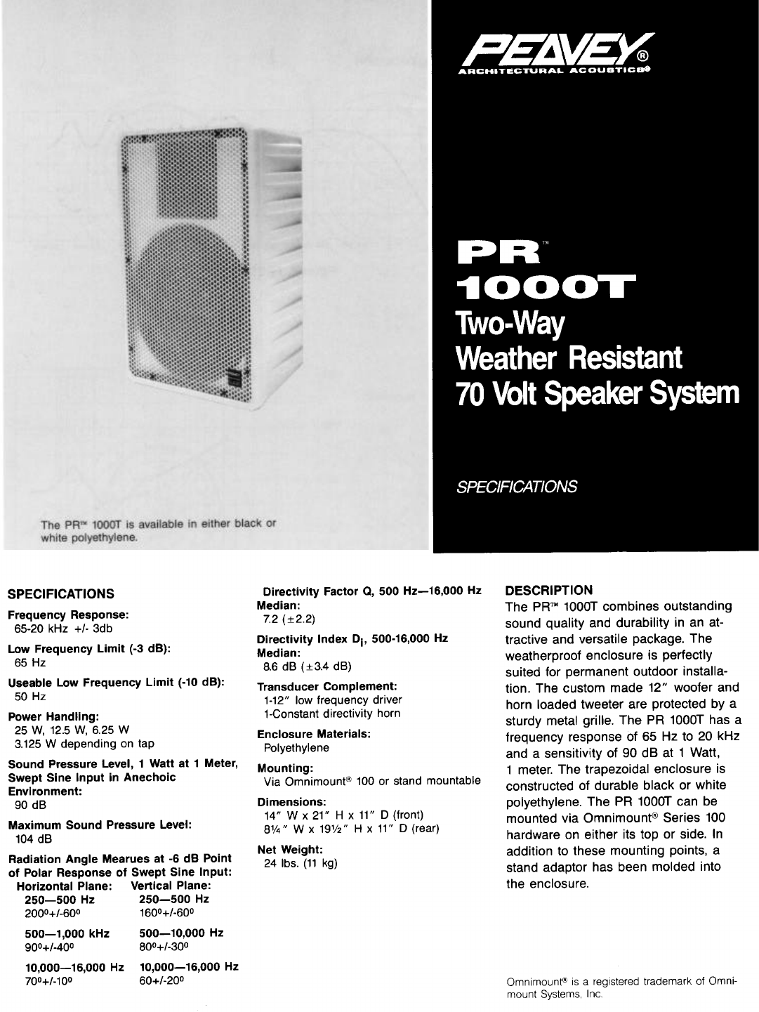 2-Way Weather Resistant 70 Volt Speaker System Specification Sheet