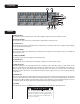 Front Panel 4 6 5 1 2 3 Input Section (1) 3-PIN LOW-IMPEDANCE MICROPHONE INPUT This input is for typical balanced, low-impedance microphones. It will automatically provide phantom power (15V) for condenser mics or active direct boxes. This has an input impedance of 1k ohms. The connector is wired as: Pin 1=shield; Pin 2=positive (hot); Pin 3=negative (cold).