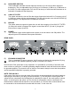(8) TRS BALANCED OUTPUT These 1/4" Tip/Ring/Sleeve (stereo) jacks provide balanced output when used with TRS connectors and 2-conductor shielded cables. When used with a mono 1/4" (TS) phone plug, the output is unbalanced. (9) XLR OUTPUT These male 3-pin connectors provide balanced output when used with female XLR connectors. (10) TRS BALANCED INPUT These1/4" Tip/Ring/Sleeve (stereo) jacks provide balanced input when used with TRS connectors and 2-conductor shielded cables.