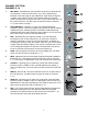 CHANNEL SECTION: CHANNELS 1-4 1. 2. 3. 4. 5. 6. 7. 1 5 MIC INPUT: XLR balanced, low-impedance channel input optimized for a microphone or other low-level source. Pin 2 is the positive input. Because of the wide range of gain adjustment, signal levels as high as +10 dBV (2.45 V RMS) can be accommodated. When the phantom power is enabled, this connector has +48 V on pins 2 and 3 with pin 1 as the ground reference. (The Mic Input can also be found on Channels 5 - 8.) See caution on page 7.