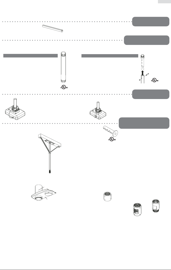 • Diseñado para que los cables pasen por el exterior de una columna de extensión de 1/2”