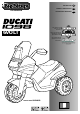 REGLES POUR UNE CONDUITE EN TOUTE SECURITE DIVERTISSEMENT SANS INTERRUPTION: prévoir une batterie de rechange chargée et prête à l’emploi. Pour la sécurité de l’enfant: avant de mettre en marche le jouet, lire et suivre attentivement les instructions suivantes: •ATTENTION! Contrôler que toutes les plaques/écrous de fixation des roues sont bien serrés. • MISE EN ROUTE: Les deux mains sur le guidon, appuyer sur la pédale d'accélérateur; le véhicle se met en marche à une vitesse d'environ 4 Km/h.