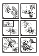 komarjem z zadrgo (glejte Dodatke). 10• Da bi namestili strehico, navzdol potisnite priključke, dokler ne kliknejo, kot je prikazano na risbi. 11• Strehico pripnite, kot je prikazano na risbi, na notranjo stran naslona za roke in na hrbtni naslon. 12• Da bi napeli strehico, potisnite napenjalo navzdol. Strehico je mogoče nagibati v skladu z naklonom naslona.