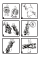 af ryglænet, hvorefter skulderselerne løsnes fra de to skulderremme. 27• Da de to skulderremme er forbundet med hinanden, er det nødvendigt at trække dem ud gennem spalterne i posen, som vist på tegningen. 28• Knap posens knapper af på siden, som vist på tegningen. Træk posen ud sidelæns fra stellet, og træk så posens sidestykker opad som tegningen viser. 29• Skru remmen fri (kun i den ene side) som på tegningen, mens du holder en finger under møtrikken.