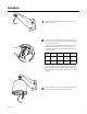 Installation . 1 Install the mount for the pendant dome. Refer to the instructions supplied with the mount. 2 Open the hinged door to the back box. Push the tab lock towards the wall of the unit and lift the door open. Pull power, alarm/auxiliary, and network cable into the back box. The following are the recommended maximum distances for 24 VAC applications and are calculated with a 10 percent voltage drop. (Ten percent is generally the maximum allowable voltage drop for AC-powered devices.