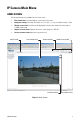 IP Camera Main Menu HOME SCREEN The following features are available from the Home screen: • Live stream view: Live video displays in the center of the screen. • Image rate setting: The image rate can be set to 15, 10, 5, 2, or 1 ips; the default setting is 15 ips. • Change screen view: Live video can be displayed in normal screen mode, full screen mode, or scalable screen mode. • Capture a screen view: Captures and saves a screen image as a JPEG file.