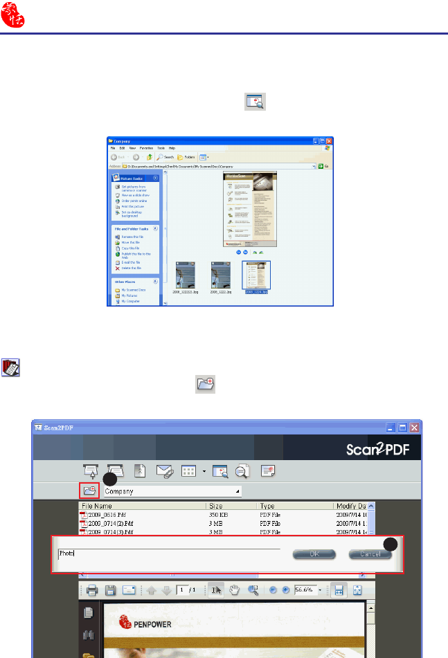 Scan2PDF offers you the [Open Folder] button to open the data folder for