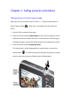 Chapter 3. Taking pictures and videos Taking pictures in Smart Capture mode When you turn on the camera the first time, it’s ready to take pictures in Smart Capture mode . (After that, it remembers the last mode you used.) 1. Use the LCD to compose the picture. 2. Press the Shutter button halfway down to focus and set exposure. Focus brackets indicate the camera focus area. If the camera is not focusing on the desired subject, release the Shutter button and recompose the scene. 3.