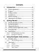 3.2.4 3.2.5 3.2.6 3.2.7 3.2.8 2 Motion Detection..................................... 26 White Balance .......................................... 27 AE Meter .................................................. 27 Digital Effect ............................................ 28 Digital Zoom............................................ 29 3.3 Playback videos.................................................... 30 3.3.1 Slow motion playback ............................ 32 3.4 Video playback settings..........