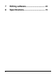 7 Editing software ..................................... 69 8 Specifications .........................................