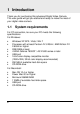 1 Introduction Thank you for purchasing this advanced Digital Video Camera. This user guide will get you started and ready to make the most of your digital video camera. 1.1 System requirements For PC connection, be sure your PC meets the following specifications: For Windows: • • • • • • • • Windows XP SP2 / Vista / Win 7 Processor with at least Pentium IV 3.2GHz / AMD Athlon FX 2.