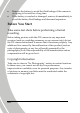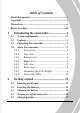 Table of Contents About this manual............................................................. v Copyright........................................................................... v Precautions ...................................................................... vi Before You Start .............................................................viii 1 Introducing the camcorder........................ 1 1.1 1.2 1.3 1.4 2 System requirements............................................... 1 Features ...