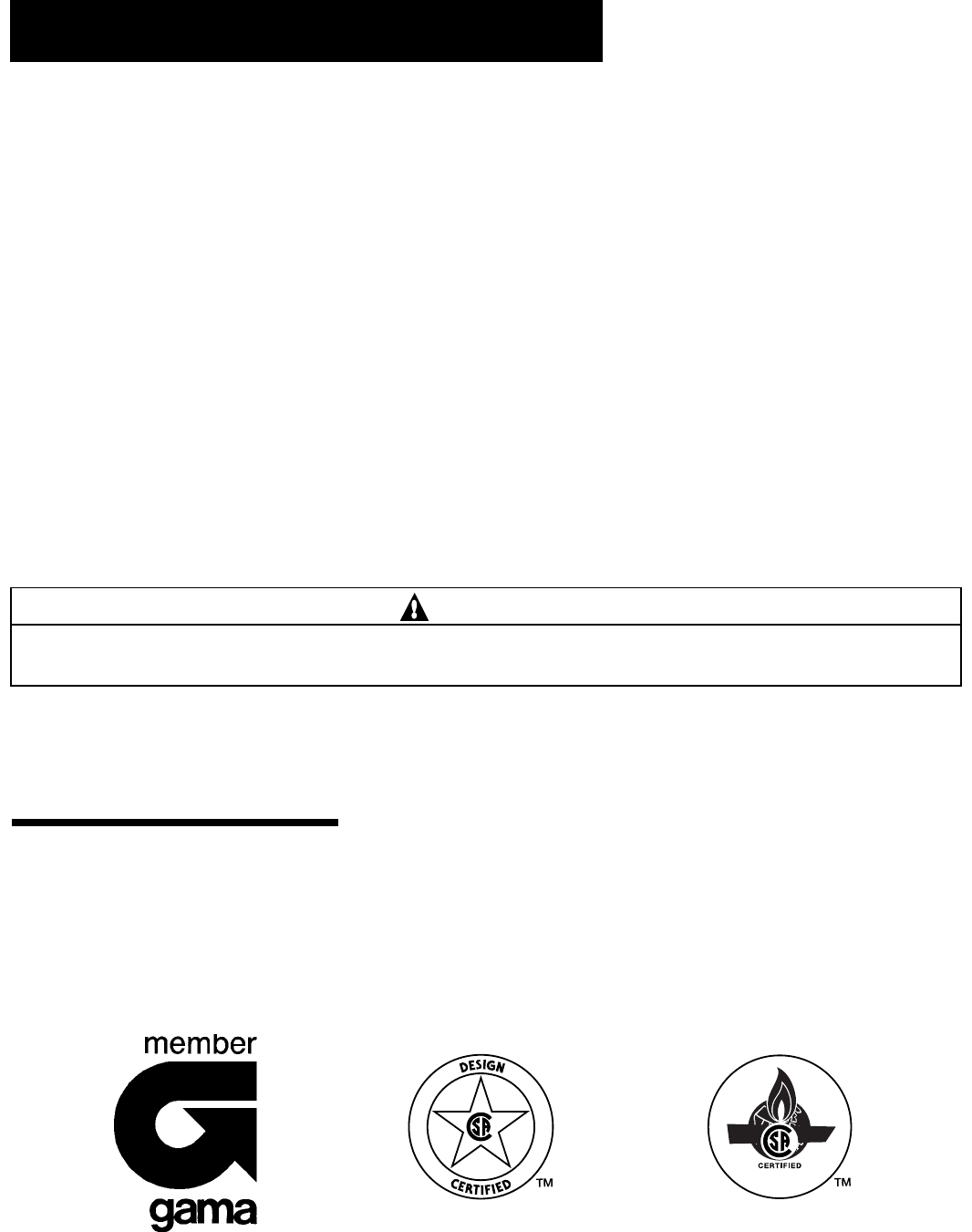 Installation in Canada to be made in accordance with the latest CAN/CGA-B149.1 or .2 and