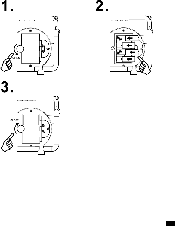 1. Installation af batterier: drej først batteridækslets låg mod uret for at