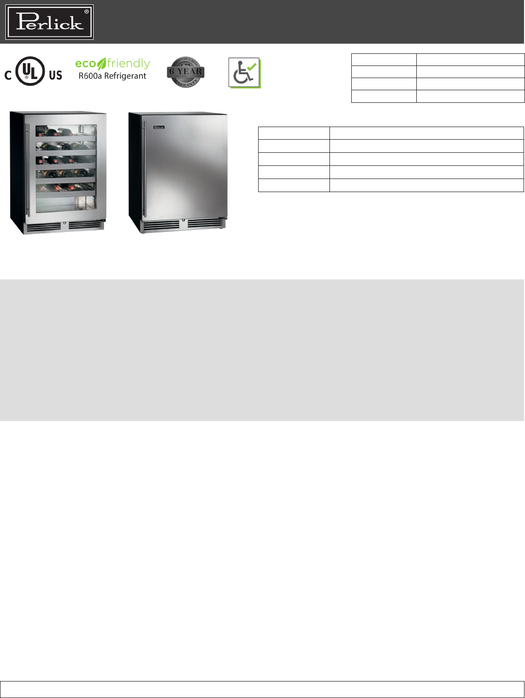 PRODUCT SPECIFICATION SHEETS Residential Undercounter Refrigeration