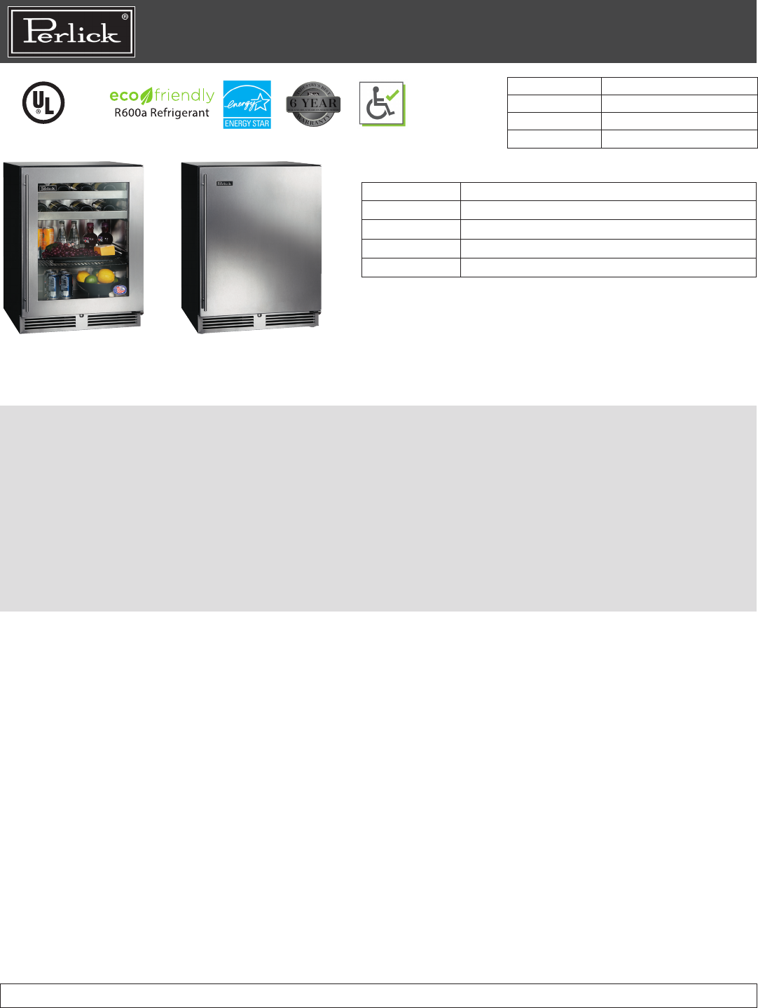 PRODUCT SPECIFICATION SHEETS Residential Undercounter Refrigeration