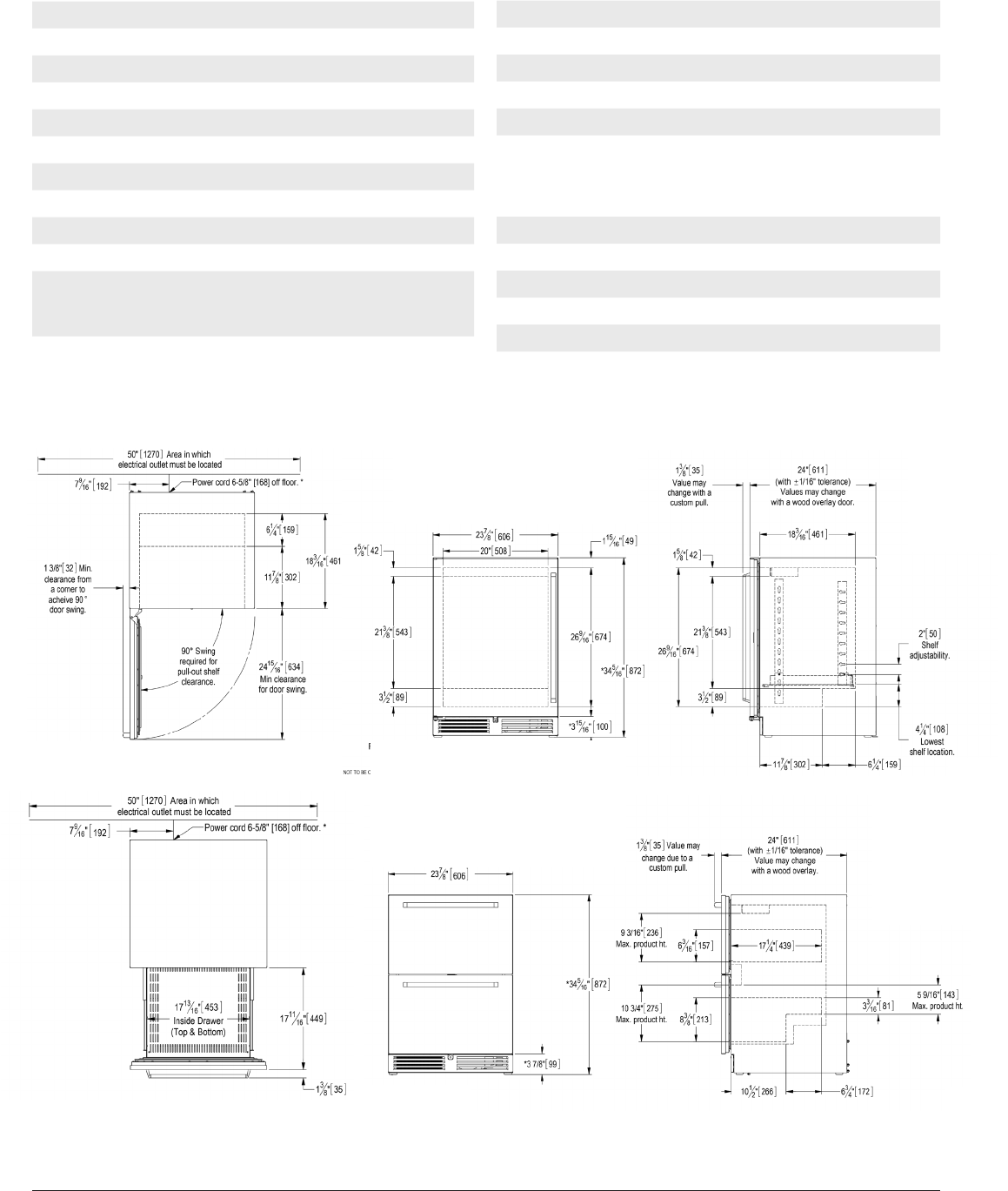 Door Swing Clearance 25” (63.5 cm.) minimum