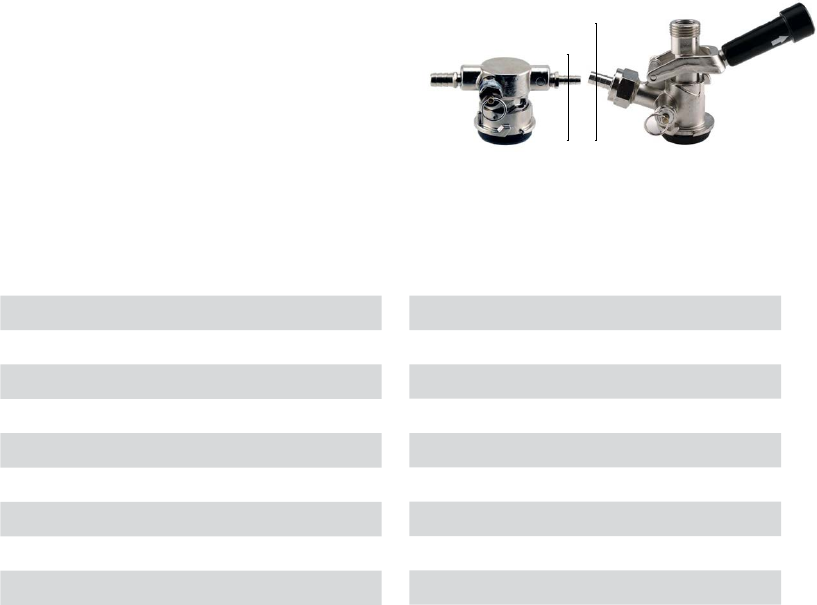 the coupler to draw out the beer from the keg. Dierent countries use dierent style couplers, so it
