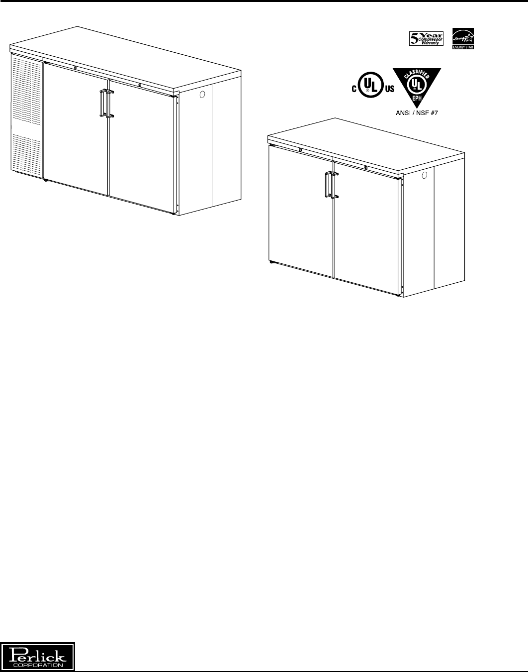 Corp. PS60, PS84, PR48, PR72 Series Pass-Thru Back Bar Coolers Owner's Manual