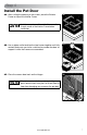 Step 4 Install the Pet Door 4A. After cutting the opening in the screen, place the Exterior Frame on top of the Interior Frame. 4A Installer can put a small bead of silicone caulk in each corner of the Interior Frame before installation. 4B. Use a rubber mallet and tap the two frames together until fully seated. Make sure you have a solid surface under the door to support it while the frames are assembled. 4B 4C. Place the screen door back on the hinges.