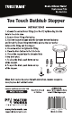 Need a Different Finish? LEE ET) Kits Available Toe Touch Bathtub Stopper INSTRUCTIONS 1. Choose the correct brass fitting threading into the hole in the drain shoe. 2. Remove Brass fitting after testing. 3. Hold the stopper in hand with the threaded bottom facing up and thread the brass fitting into it while placing the star washer between the fitting and the stopper. 4, Use screw driver to tighten the fitting. 5. Place the Hair Catcher in the Tub Drain 6.
