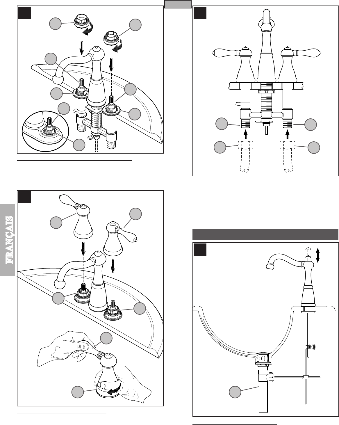 Monter les manettes (10A) sur les adaptateurs de robinets (10B). S’assurer que les