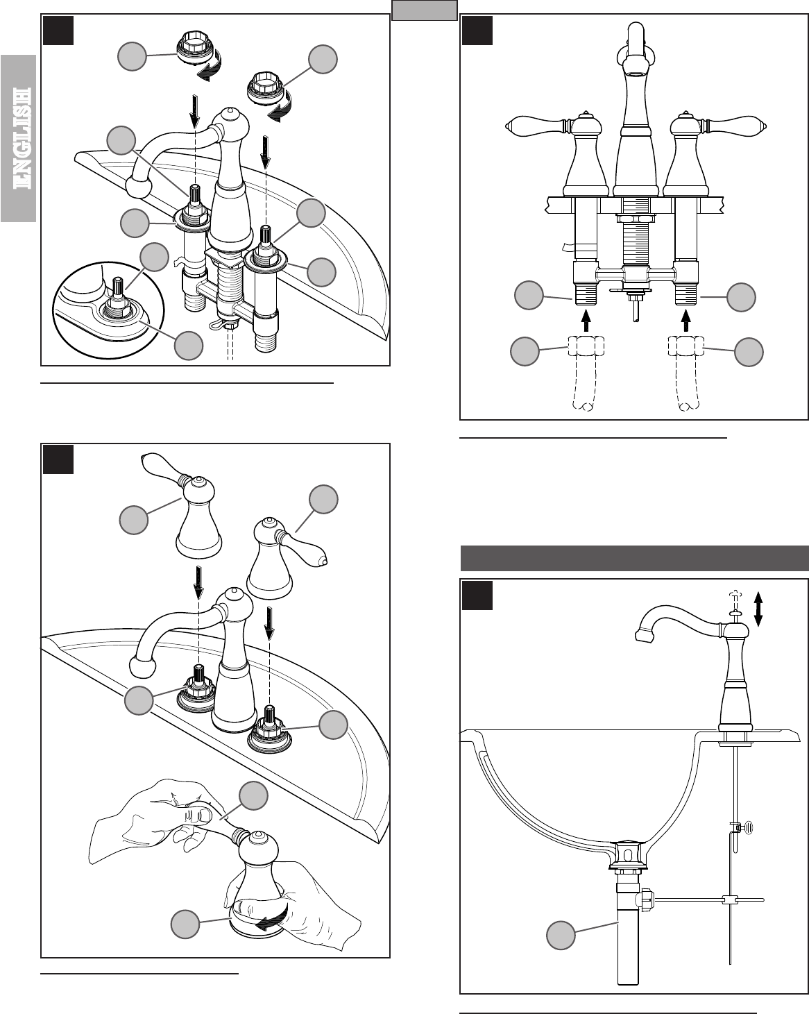 Rosque los adaptadores de la manija (9A) sobre los vástagos de válvula (9B) y apriete de