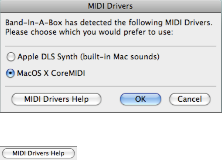 Click on [MIDI Drivers Help] to go to the CoreMIDI and Apple