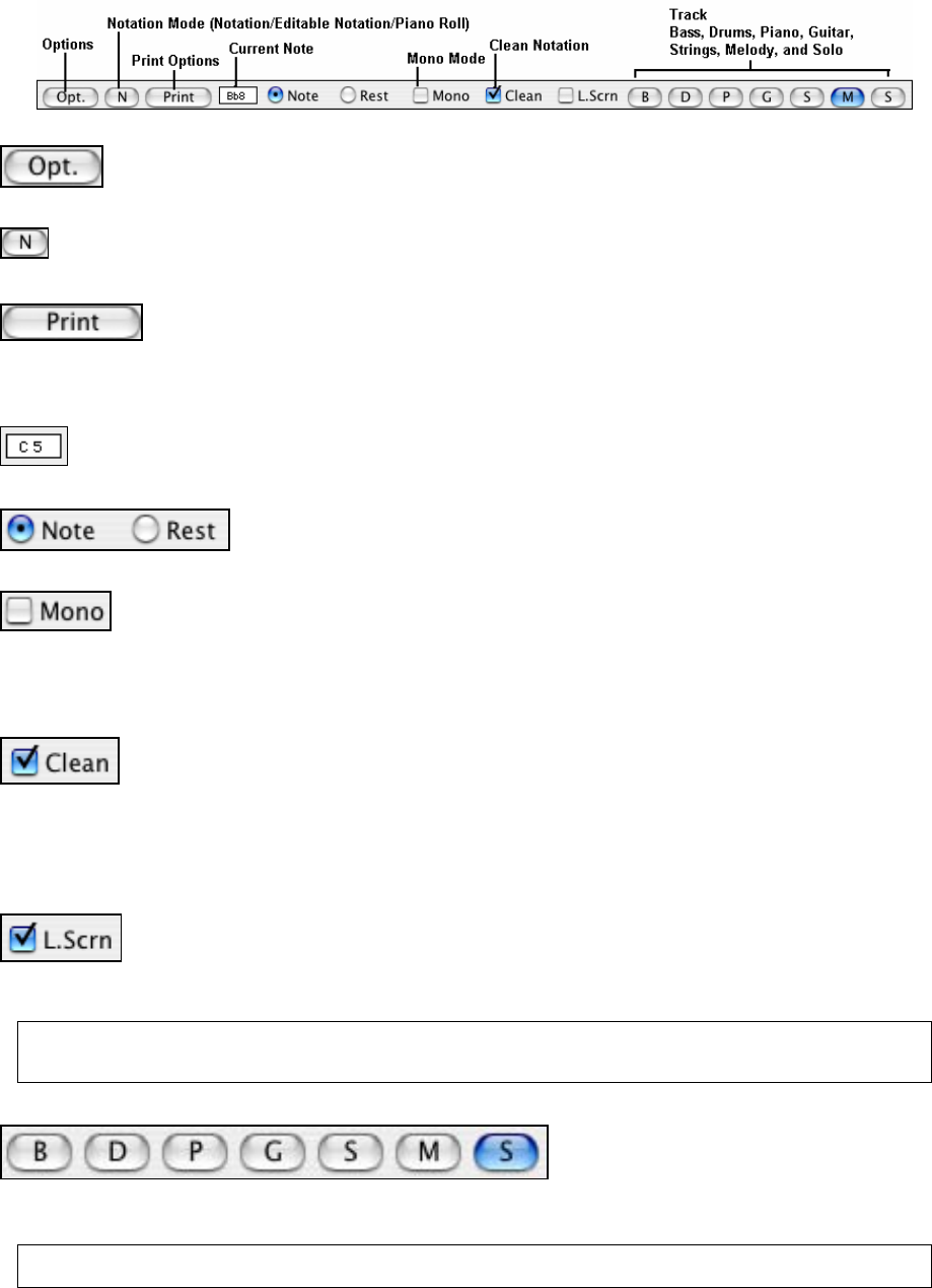 Press this button to Print the Notation to any standard printer supported by the Macintosh. (If