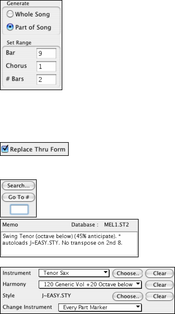 “Generate” form will be automatically set to “Part of Song” and the range of