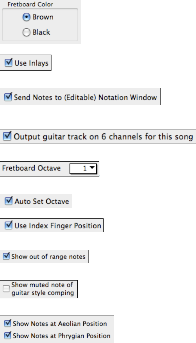 Show out-of-range notes: If set, any note will be displayed on the guitar, regardless if it is the range of the guitar or