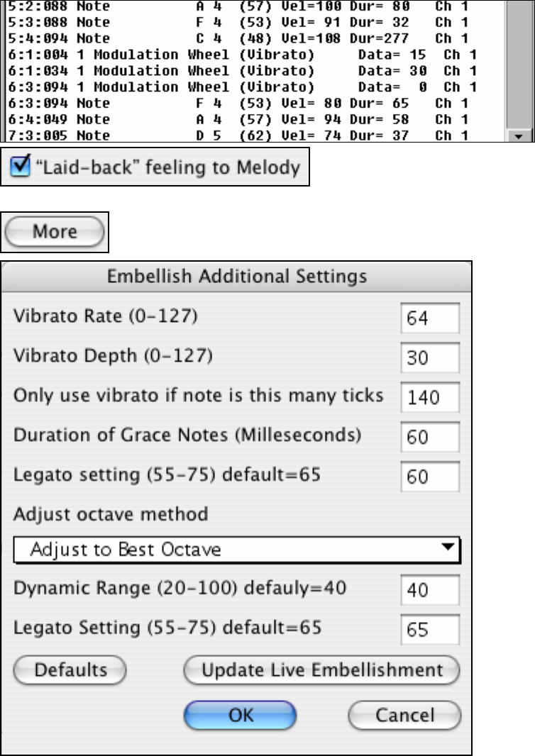 Vibrato: Vibrato can be added according to the additional vibrato settings available in the “More” dialog. The