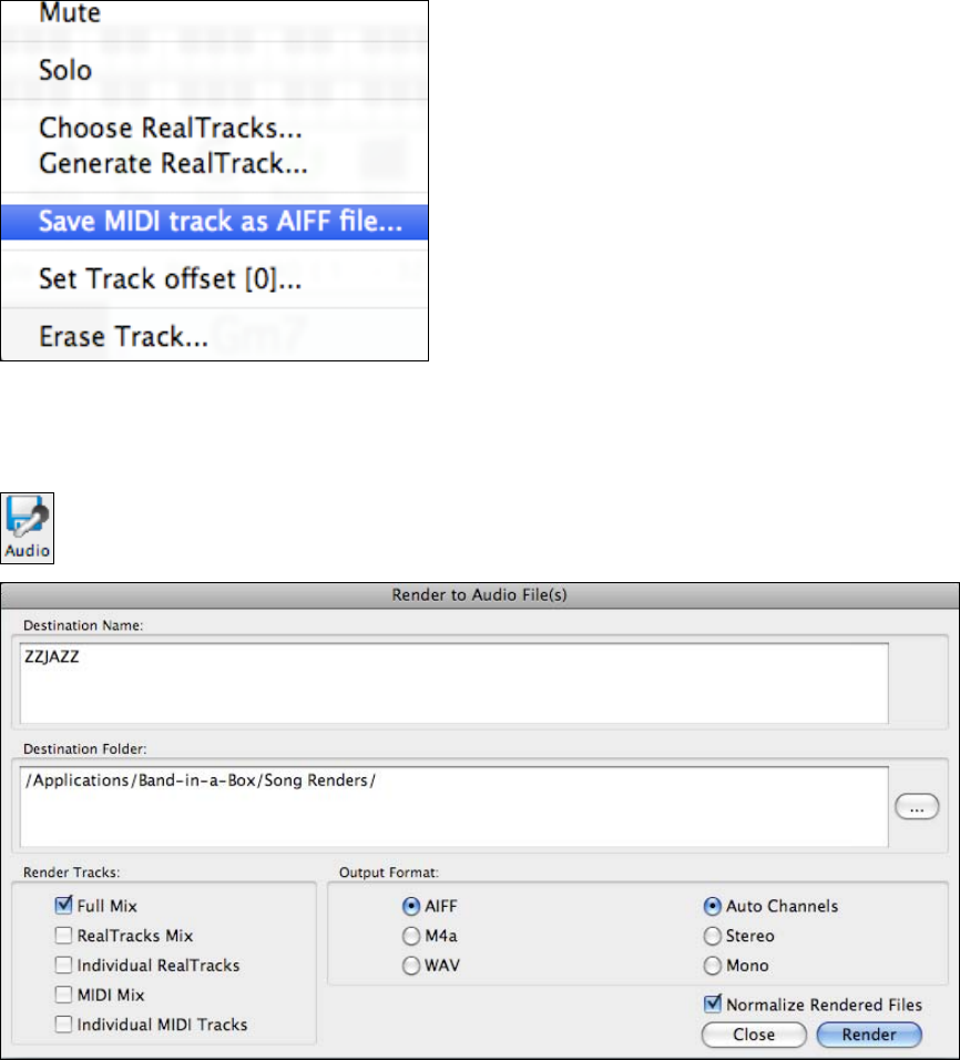 Any Band-in-a-Box MIDI track can be automatically rendered to an AIFF audio file from its contextual menu. The
