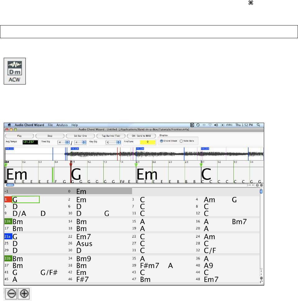 and displays them in Band-in-a-Box. Just load an audio file to instantly see the chords.
