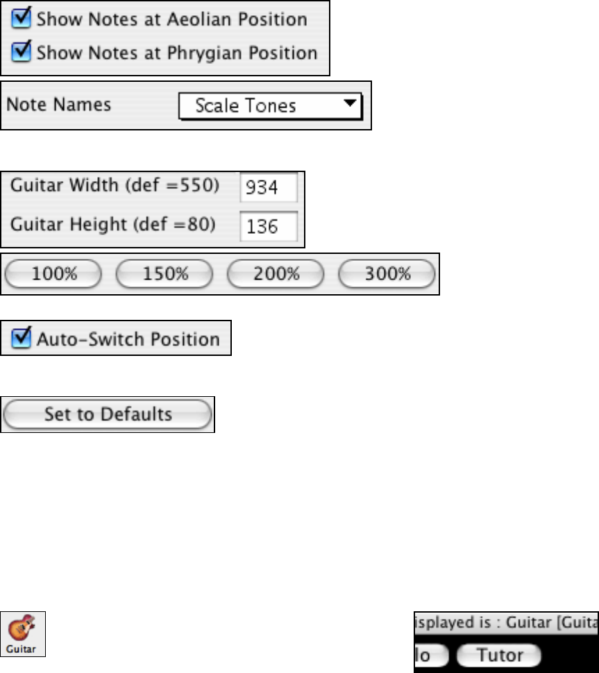 The Guitar can be sized using the Guitar Width and Guitar Height setting or the preset buttons that set the size.