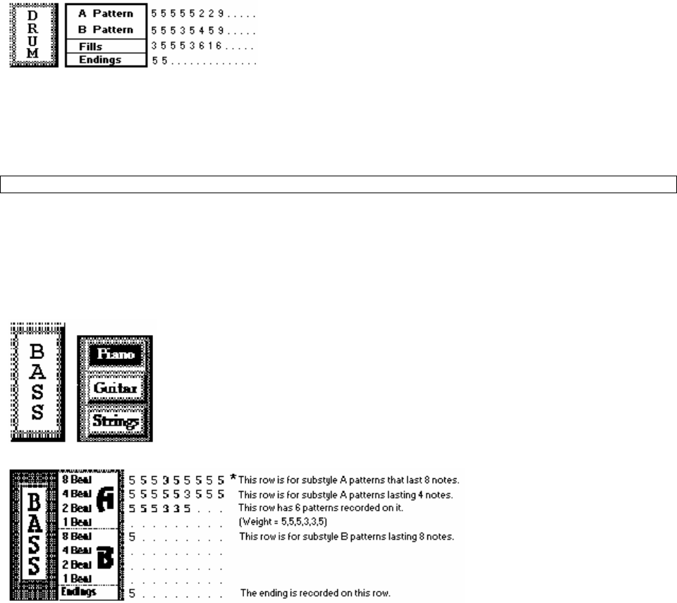 to use these rows. The “a” and “b” refer to the “a” and “b” substyles found in Band-in-a-Box. The numbers 1, 2, 4,