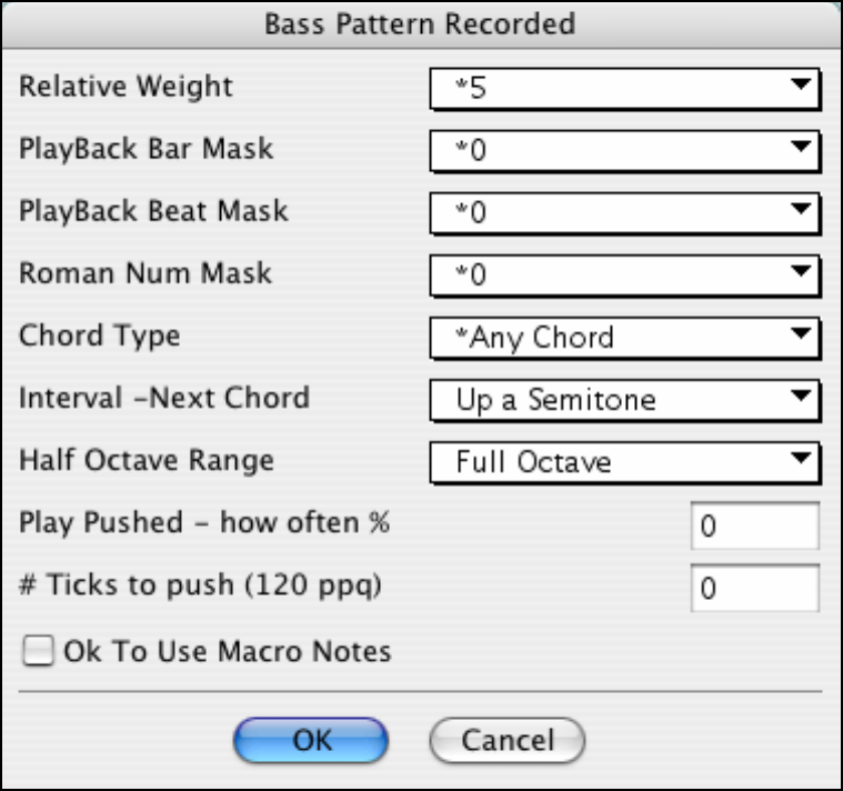 Set this number higher/lower if you want the pattern to be played more/less often than the other patterns on the same