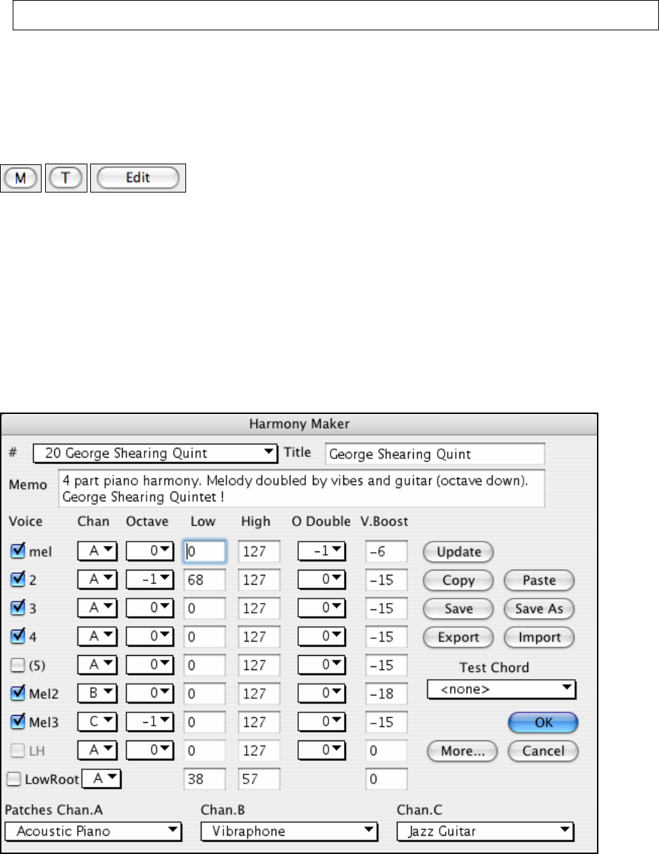 created and can be saved to disk as harmonies files. Changes in harmonies can be heard “live” as a song is playing.