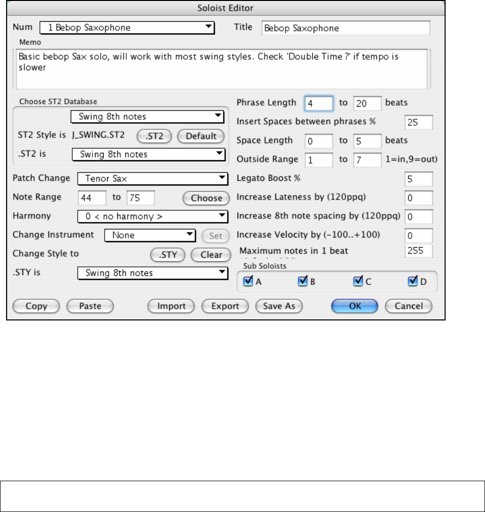4. Choose the type of soloist, i.e., Swing 8th notes, Even 8th notes, Swing 16th notes, etc. This should be set