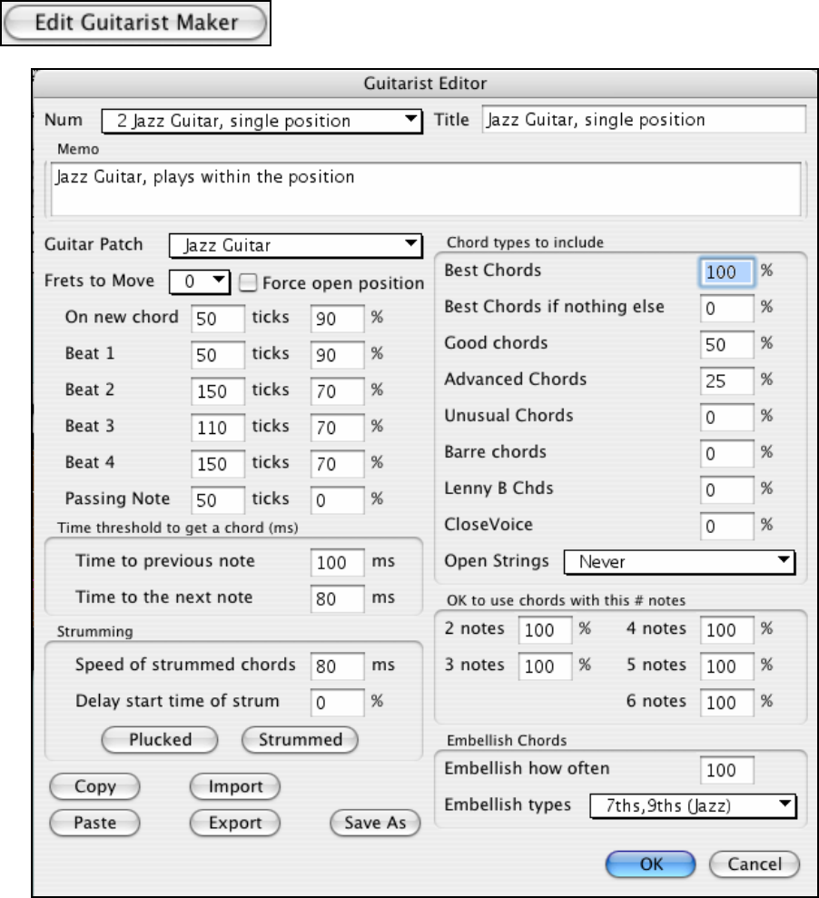 - Frets To Move field: If set to zero, the guitar chord solo will be limited to chords that can be played within the