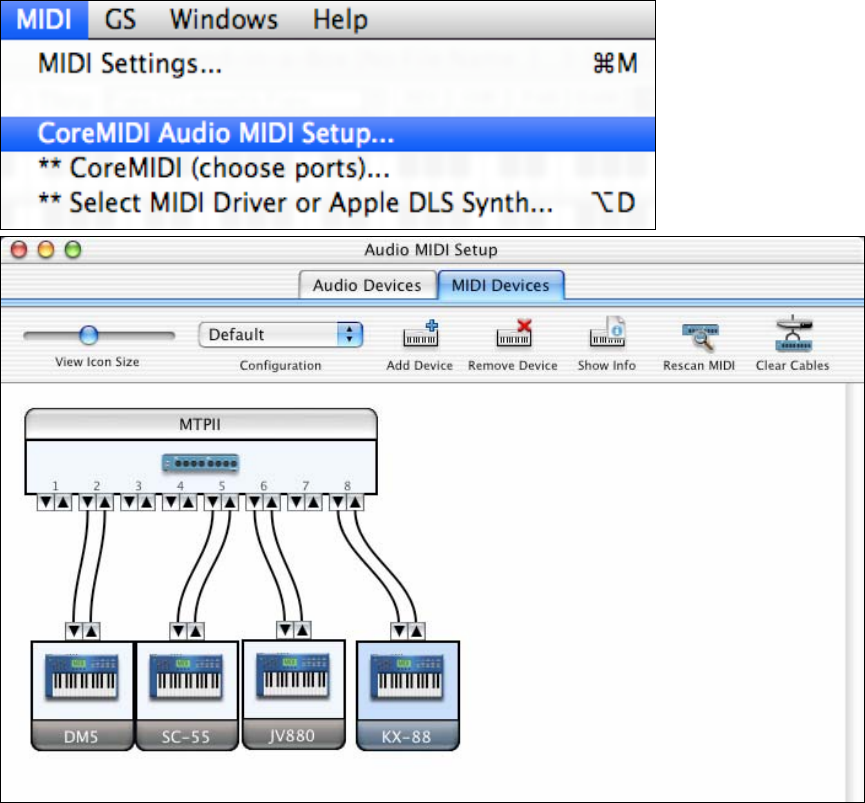 and your connected external MIDI devices. This is a relatively complicated example, with an eight port MIDI