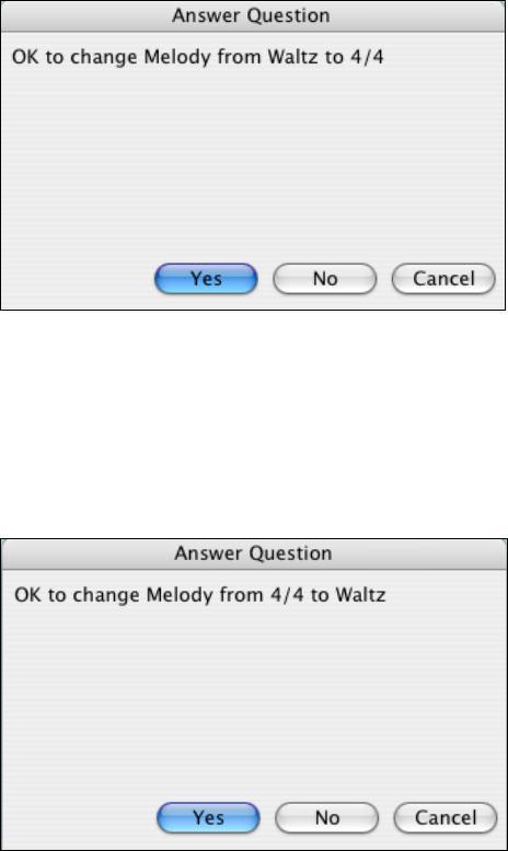 the Melody from 4/4 to 3/4. If you click YES to that, the transformation will occur and you can listen to the Melody