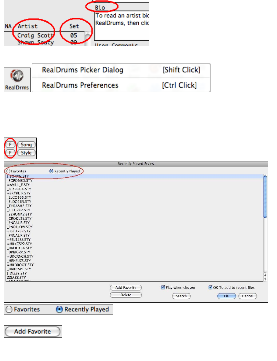 showing you both recently used songs/styles, and a new list of “favorites” that you select as favorite songs or styles.