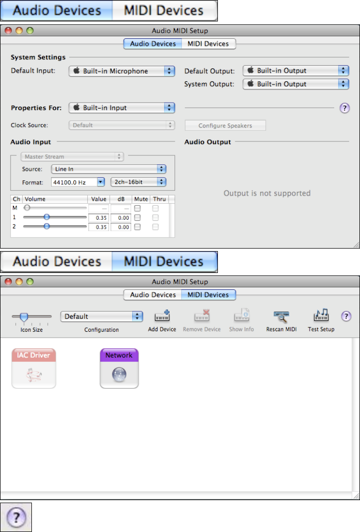 There are two separate windows for Audio Devices and MIDI Devices, selected by clicking on the one you want in