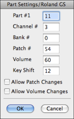 - Changing Volume, Panning, Reverb, Chorus, Bank