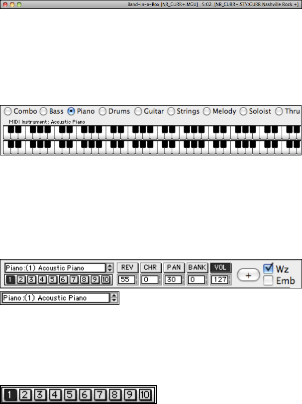 (Bass, Piano, Drums, Guitar, Strings, Melody, Soloist, and Thru). Once assigned, these instruments can be quickly