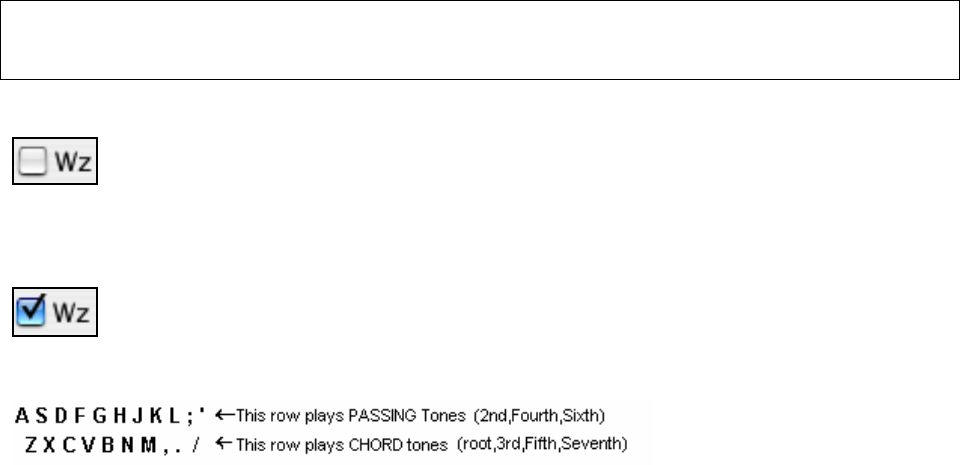 Click on the [Wz] box to turn the Wizard feature On/Off, or select the Wizard Playalong option from