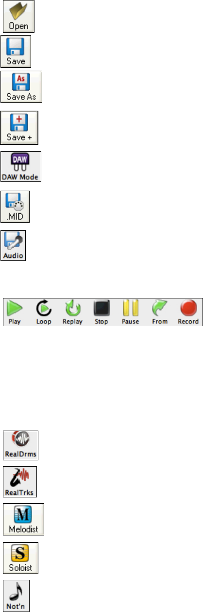 The [Open] button is used to open (load) songs into the program from the Open File dialog.